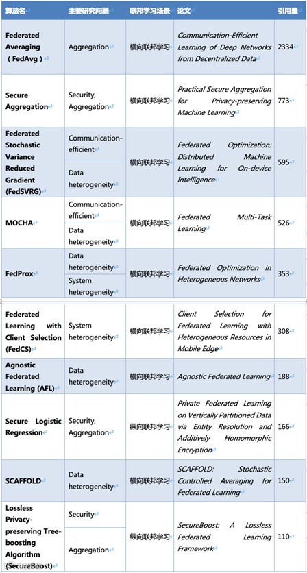 图|联邦学习十大算法(来源:《2021 联邦学全球研究与应用趋势报告》)