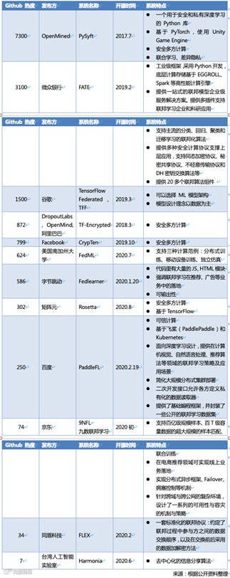 图|开源的联邦学习框架(来源:《2021 联邦学全球研究与应用趋势报告》)