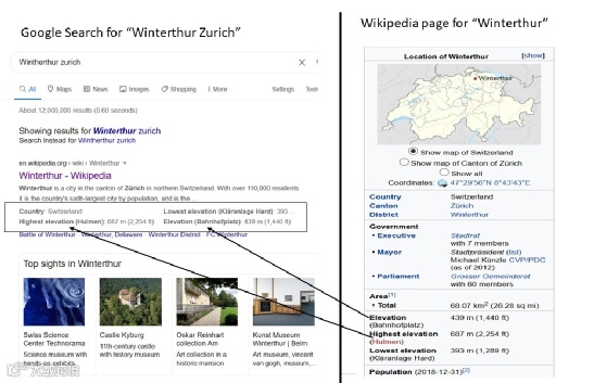 在谷歌上搜索 “苏黎世 温特图尔” 的结果显示在图 2 的左侧,而维基