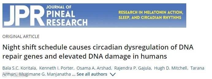 目前,该研究以 “Night shift schedule causes circadian dysregulation of DNA repair genes and elevated DNA damage in humans”为题在线发表在 Journal of Pineal Research 上。