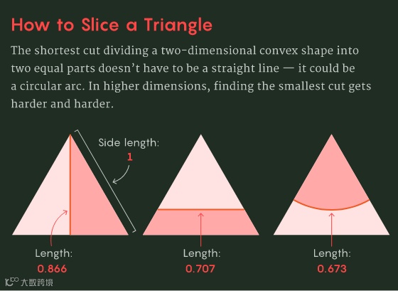KLS 猜想是凸几何中最重要的猜想之一。这个有 25 年历史的猜想,是关于把一个形状切割成两等份的最佳方法,它蕴含了 Bourgain 的猜想。更重要的是,KLS 猜想是统计学和计算机科学中许多问题的核心,比如热量在凸形中扩散需要多长时间,或者一个随机游走者从一个起点走多少步才能到达一个真正随机的位置。