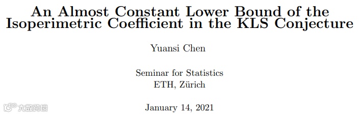 在去年 11 月于 arXiv 上发表的论文《An Almost Constant Lower Bound of the Isoperimetric Coefficient in the KLS Conjecture》已经证明可以