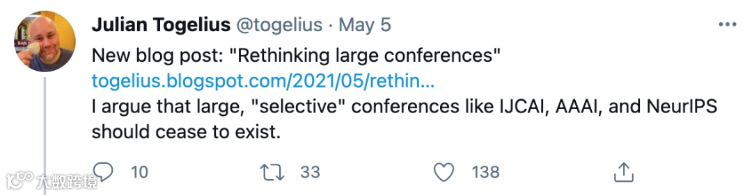 原来,他在自己的博客上发表了一篇新文章“Rethinking large conferences”,反思了大型顶会的现状。