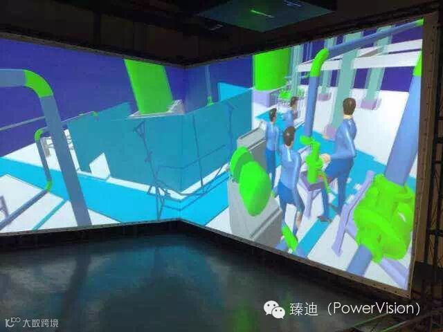 PowerVision沉浸式多人协同虚拟仿真系统基于美国洛克西德马丁公司海空联合实验室(亦称船舶动力实验室)于2007年实施的四人协同解决方案。不同于该方案的是,PowerVision沉浸式多人协同虚拟仿真系统解决方案在软硬件技术规格层面进行了大幅度优化,并结合实际工业设计的需求,可应用于目前几乎全部主流软件平台、外设终端和显示方案。