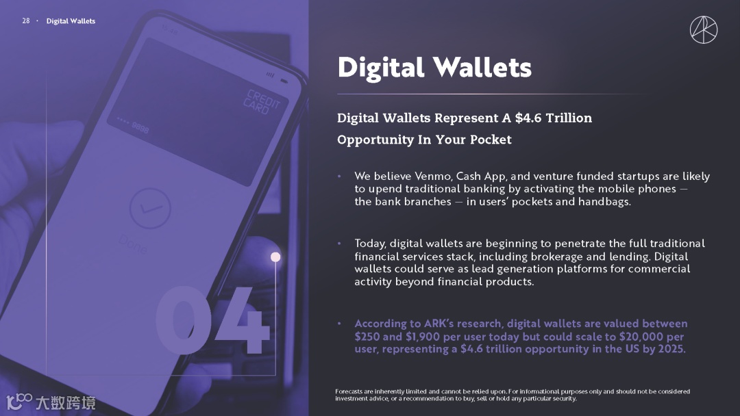 ARK 表示,数字钱包可能会给人们带来超过 4.6 万亿美元的机会,并颠覆传统银行业务。