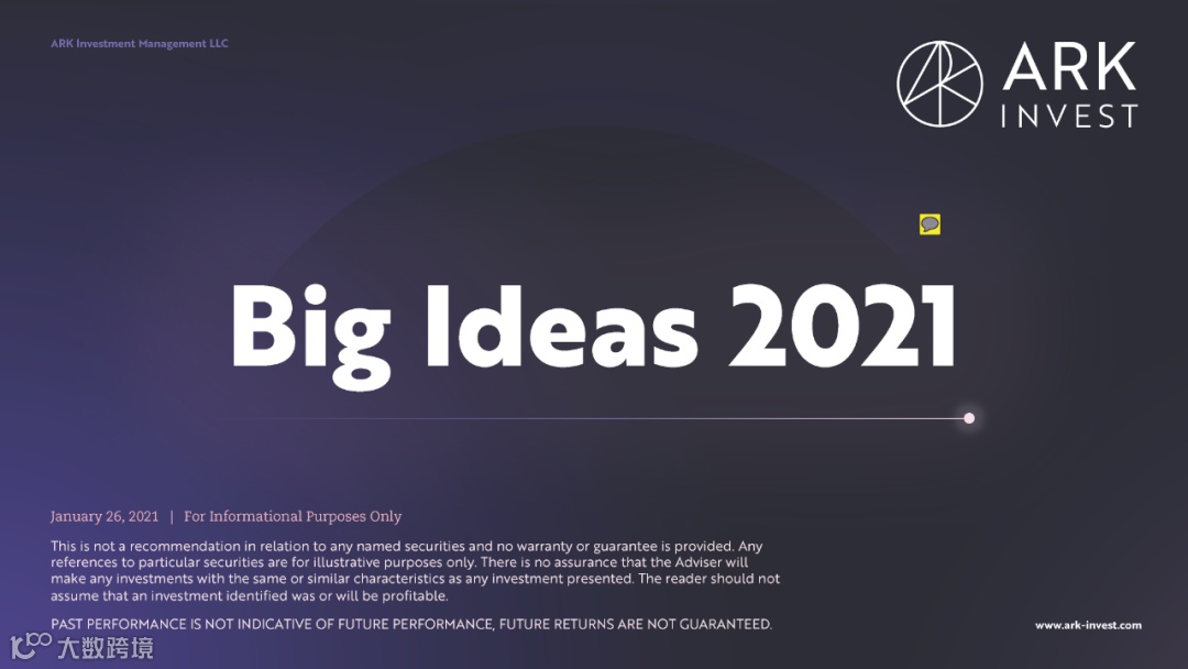 近日,ARK Invest 发布了 2021 年度大创意报告 Big Ideas 2021,强调了在创新领域的最新发展,并提供了本年度最具颠覆性的研究。