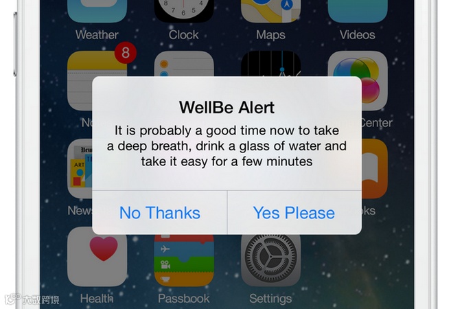 用户还可以在应用程序里进行警报设置,当压力值超过一定水平时,就会触发警报,并且将有效的减压练习推送至桌面,此时用户就可以采用推送上的小提示来让自己的情绪得到短暂的缓解。