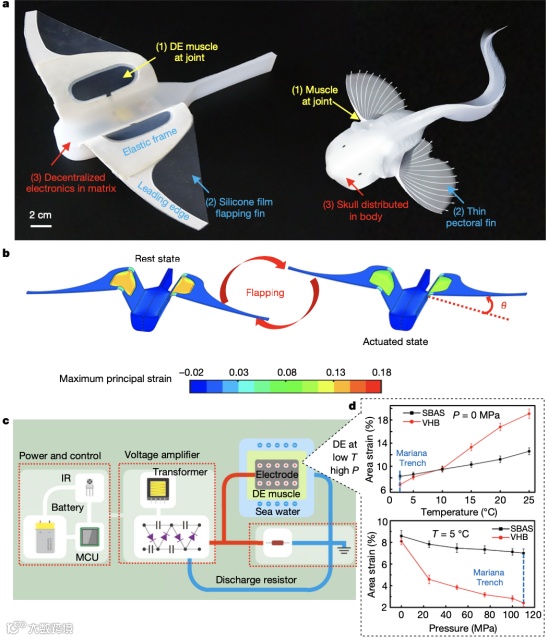 相关研究论文以 “Self-powered soft robot in the Mariana Trench”(马里亚纳海沟里的自供能软体机器人)为题,于 3 月 4 日发表在《自然》(Nature)杂志上。