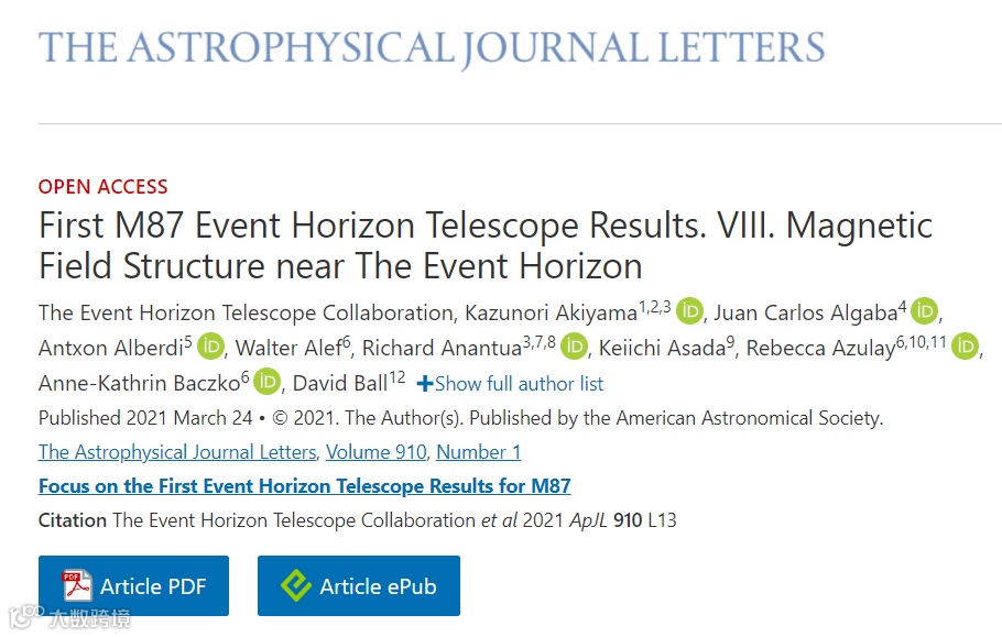 3 月 24 日,曾成功捕获人类有史以来首张黑洞照片的事件视界望远镜(EHT)合作组织宣布,天文学家第一次在接近黑洞边缘处测得了表征磁场特征的偏振信息。新研究的参与者来自全球多个机构、大学,数量超过 300 人,中国科学院
