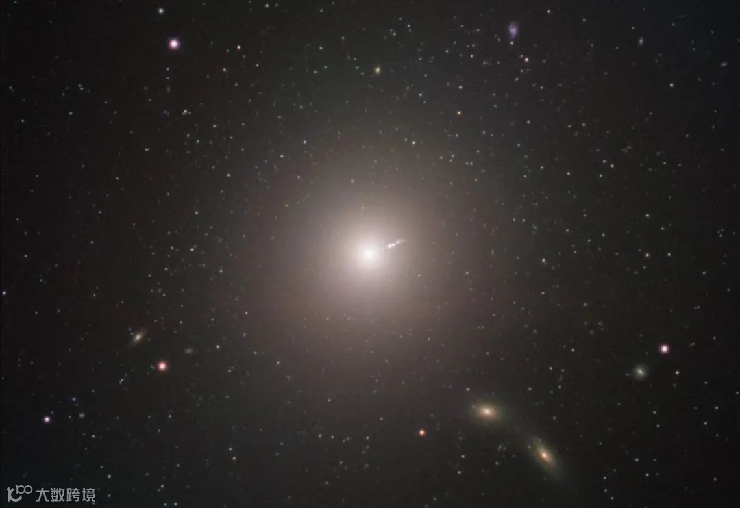 M87 星系由于距离地球较近,且中心黑洞质量大,是天文学家最热衷观测和研究的目标之一。该星系由核心发出一道向外延伸约至少 5000 光年的高能等离子喷流,运动