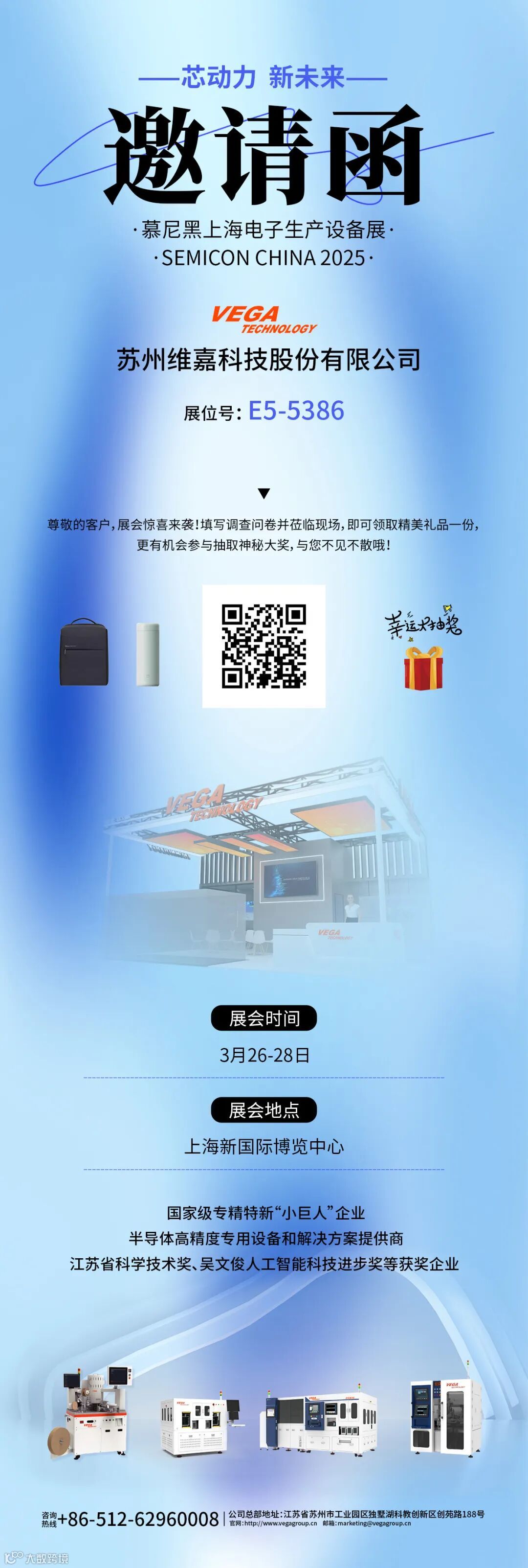芯动力,新未来!诚邀您参加2025年3月26-28日在上海新国际博览中心举行的慕尼黑上海电子生产设备展。维嘉科技在E5馆5386号展台恭候您的莅临。期待与您进行深度技术交流,共绘智造新蓝图!