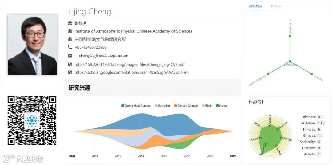 图 | 研究团队成员中国科学院教授 Lijing Cheng,识别二维码查看学者人才报告详情(来源:智慧人才)