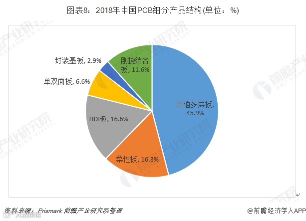 根据Prismark的统计,2018年全球PCB细分产品的市场结构如下:
