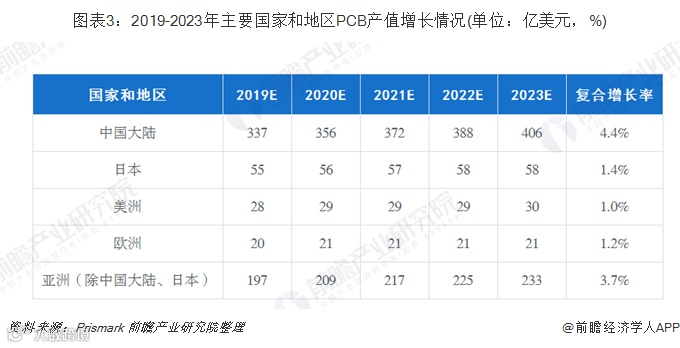 据Prismark预测,未来5年亚洲将继续主导全球PCB市场的发展,而中国的核心地位更加稳固,中国大陆地区PCB行业将保持4.4%的复合增长率,至2023年行业总产值将达到405.56亿美元。在PCB公司"大型化、集中化"趋势下,已较早确立领先优势的大型PCB公司将在未来全球市场竞争中取得较大优势。