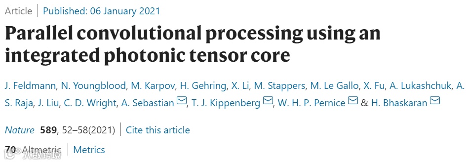 好在,一个由多国科学家组成的团队已经开始着手解决这个问题。最新研究进展以“Parallel convolutional processing using an integrated photonic tensor core”为题,于 1 月 6 日发表在顶级科学期刊《自然》(Nature)上。