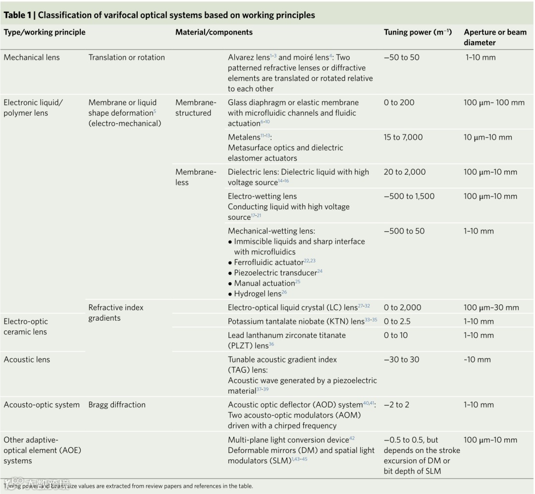 近日,普林斯顿大学的Craig B. Arnold等人在Nature Photonics上发表综述,题为“Variable optical elements for fast focus control”,分析和介绍了实现亚毫秒和微秒响应时间的高速变焦光学元件的关键技术,回顾了该技术发展在相关技术领域中的应用,并讨论了该技术的重要发展前景。