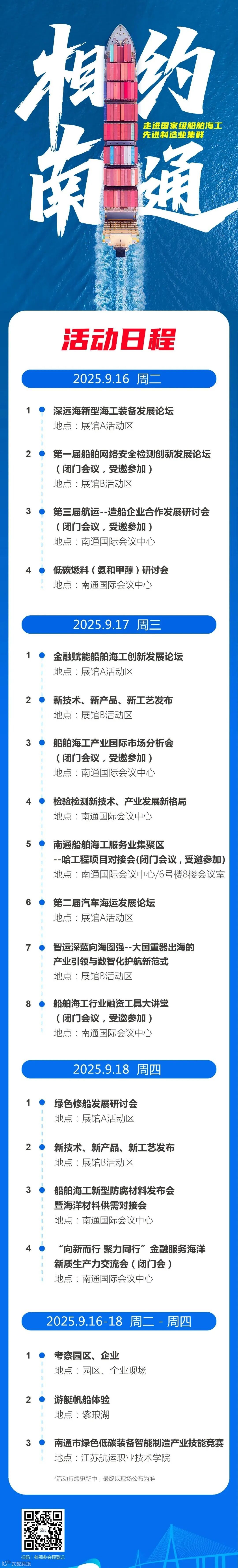 2025年9月16日-18日,备受瞩目的南通船舶海工产业展将再次扬帆启航,诚邀全球业界同仁共赴这场链接机遇、打造世界级产业集群和驱动未来海洋经济引擎的的盛会。