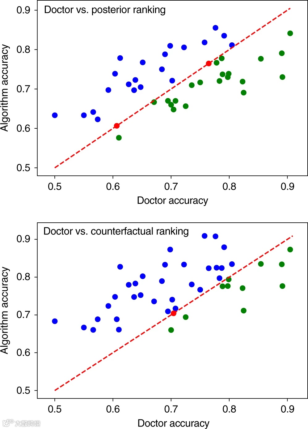 然后,人工智能系统也进行了相同的测试,并使用了一种基于相关性的旧算法(专门为此研究创建,而不是从最新的产品中获得)和较新的因果算法。对于每项测试,人工智能只能报告与医生相同数量的答案。