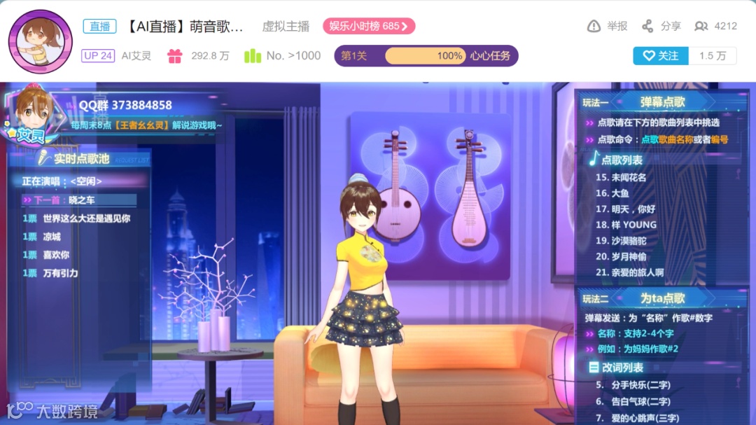 更多关于腾讯 AI 艾灵戳这里->腾讯 AI 艾灵领唱中国新儿歌(https://mp.weixin.qq.com/s?__biz=MzIzOTg4MjEwNw%3D%3D&chksm=e92219cbde5590ddc2a5c4242bdedb14c251555d79cd6945882dd1fcf1aace12dfefe4c47ae1&idx=1&mid=2247484383&scene=21&sn=59257c51daba61da9dfd9f1660babcc6)。顺便安利下 AI 艾灵的 B 站直播间https://live.bilibili.com/21927742。