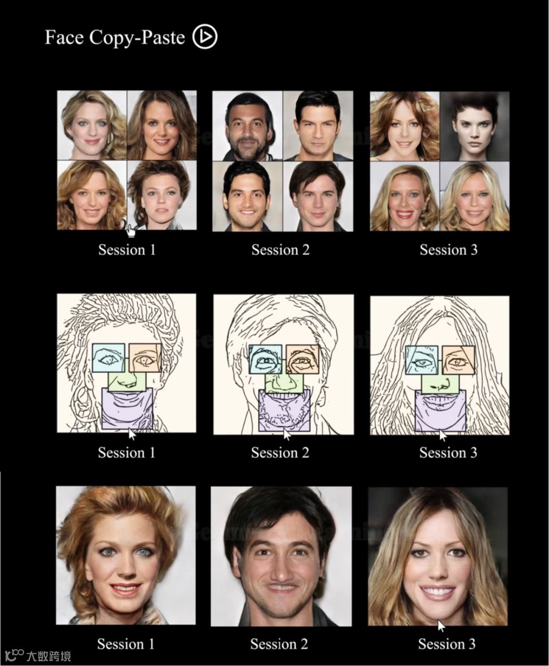 它还具有一个有趣的功能——用户可以不画任何东西,只需要选择几个自己喜欢的面部特征,就可以得到它们组成的理想的脸。这就是所谓的人脸复制粘贴(Face Copy-Paste)。