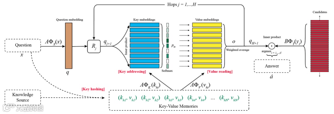 键值记忆网络是记忆网络的一种扩展形式,框架结构如图四所示。