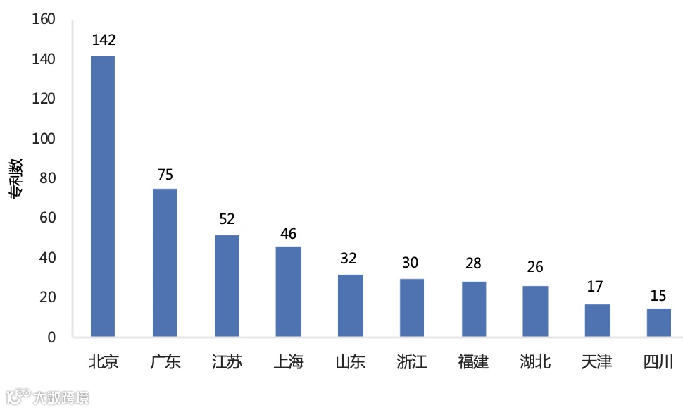 从各省排名来看,当前申请人(专利权人)主要分布于北京、广东、江苏、上海等具有一定经济基础,科技投入度高的发达省市。