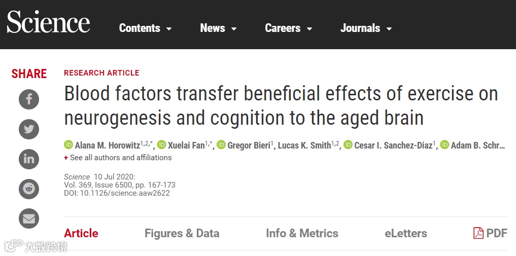 当然,这项研究更重要科研价值在于,表明了运动对神经系统的益处可以通过血液循环因子传递,同时发现了一种很少被研究的肝脏蛋白,可能与运动对衰老大脑的好处有关,为抗衰老药物研发奠定基础。