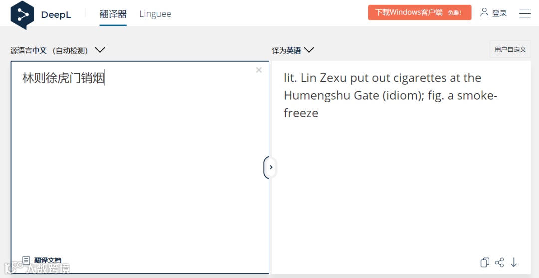 有道翻译:“销烟=烟”。有道的整体翻译,总感觉怪怪的,如果把smoke看成动词“吸烟”也不怎么通顺!难道它把“林则徐虎门”看成了一个人?