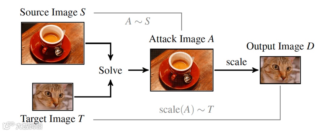在 TechTalks 的评论中,IBM Research 的首席科学家 Chen Pin-Yu 将图像缩放与隐写术(steganography)进行了比较,后者将消息(这里是缩小后的图像)嵌入源图像中,只能采用缩小后的算法进行解码。