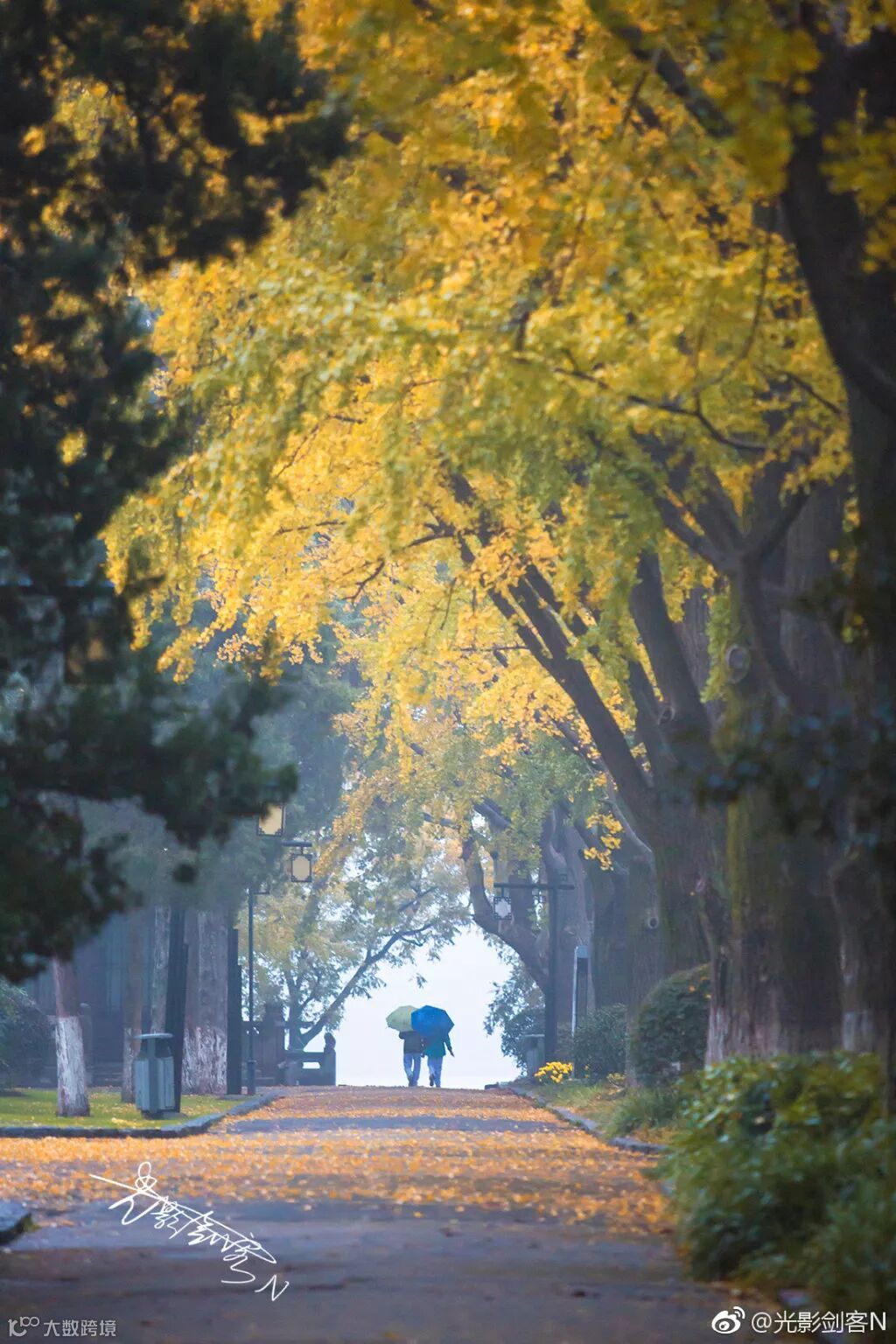 此刻的银杏大道会出现一道奇异的风景