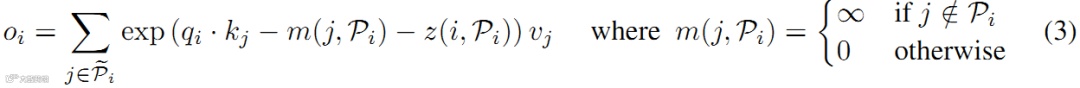 对于批量操作,当遮蔽掉不在 P_i 中的元素,此时常规 attention 定义如下: