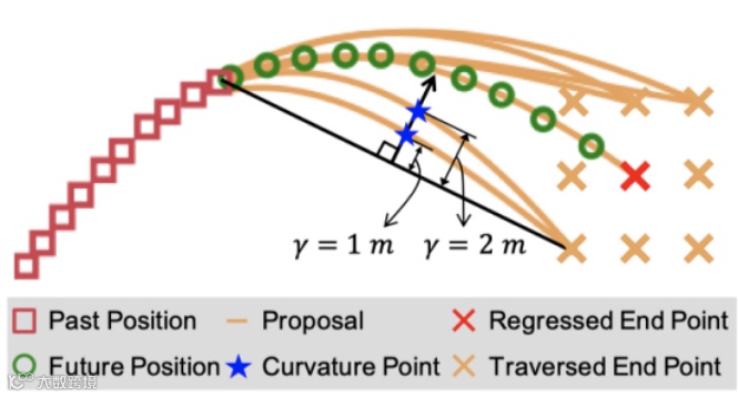 对于所有正样本及部分随机采样的负样本,轨迹修正模块对候选轨迹的终点及控制点进行修正,修正公式定义为: