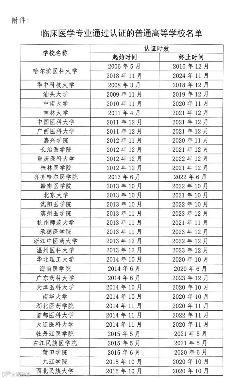 导读:教育部公布截至2019年底临床医学专业通过认证的普通高等学校名单。