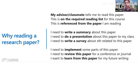 北京时间5月14日早8点,微软公司前执行副总裁沈向洋博士在全球创新学院(GIX)研究生院发表演讲,分享他对于科研论文阅读、撰写的宝贵经验。
