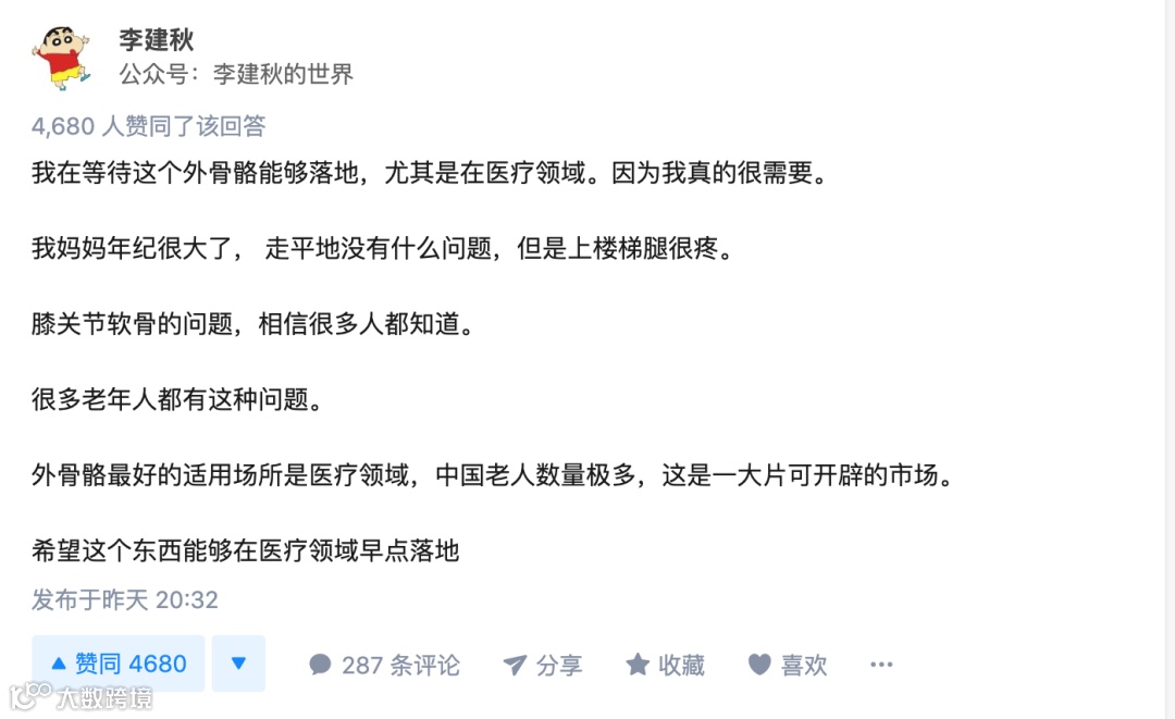 这或许也正是在知乎关于机械外骨骼送外卖的提问中,这个让人心酸又暖心的答案获得了近 5000 赞的原因。