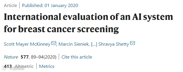 在发表于《自然》( Nature )的最新研究中,谷歌健康团队开发了一种能够检测乳腺癌的AI系统。