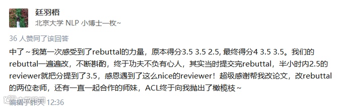 每个回答问题的网友也都对这次ACL的评审工作称赞不绝,即使文章未被录用的作者也评论:审稿人很负责,意见很中肯。