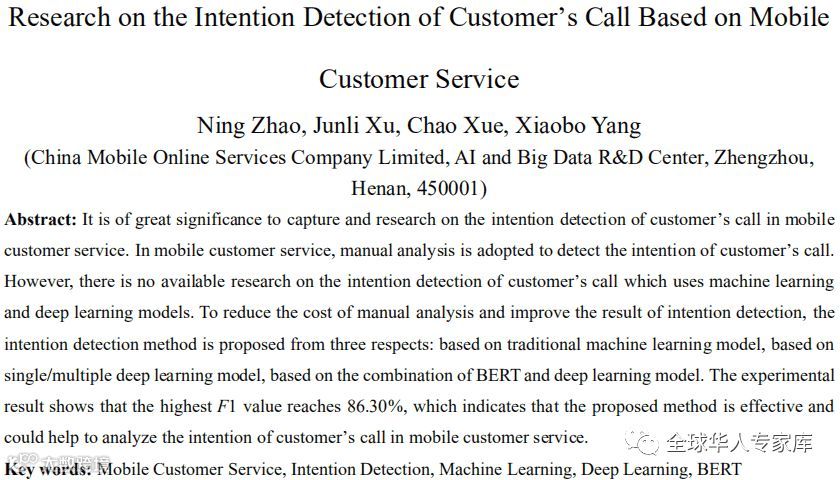 剖析:为降低人工分析成本,提高移动客服领域的客户来电意图识别结果,作者分别从基于传统机器学习模型、基于单/多深度学习模型、基于 BERT 和深度学习模型组合三个方面,进行移动客服领域的客户来电意图识别研究。数据表明作者提出的客户来电意图识别方法是有效的,不仅能够自动对客户来电内容进行分类,减少人工分析代价,而且能够有效提高意图识别效果。本文虽取得了较好的效果,但是BERT和深度学习模型组合方法较简单,所以未来的重点工作是借鉴多模型融合思想,继续探索 BERT 和深度学习模型的组合方法,进一步提升客户来电意图识别效果。