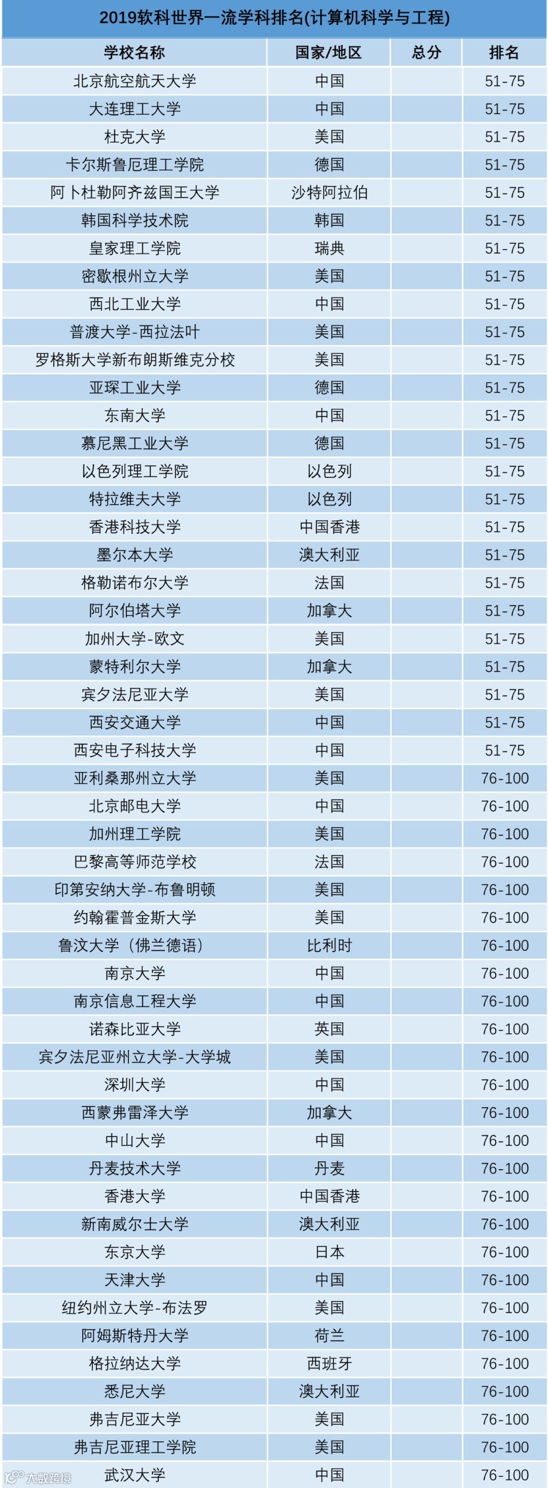 北京航空航天大学、大连理工大学、西北工业大学、东南大学、香港科技大学、西安交通大学、西安电子科技大学、北京邮电大学、南京大学、南京信息工程大学、中山大学、香港大学、天津大学、武汉大学位居51-100名之间。
