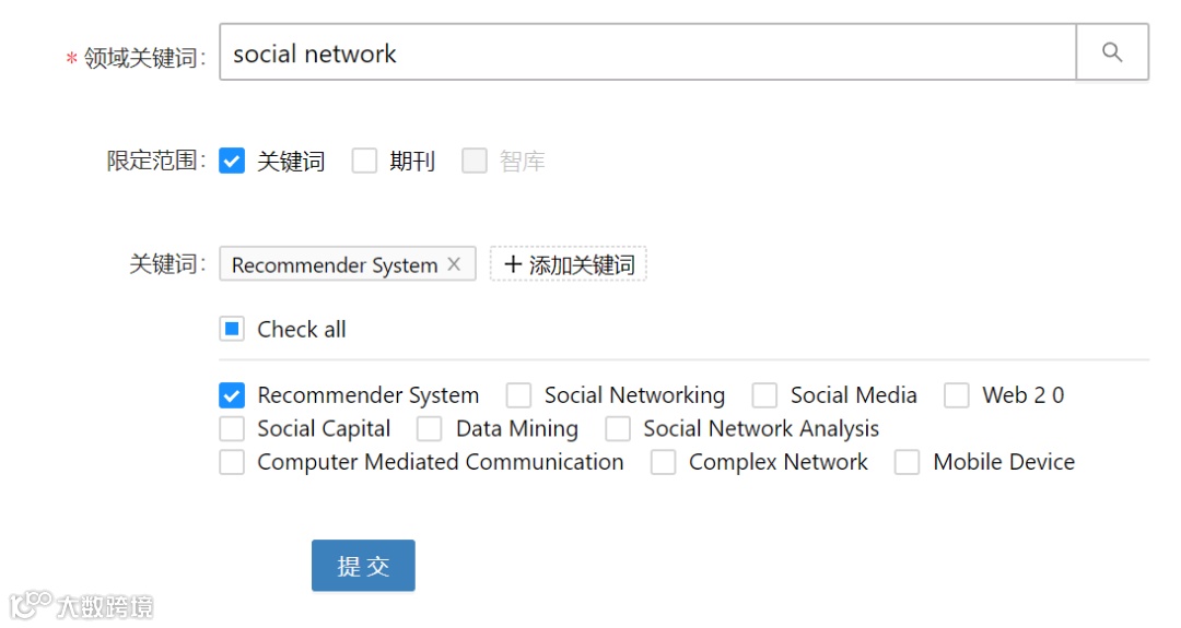 选择领域关键词时,注意输入后要回车哦!