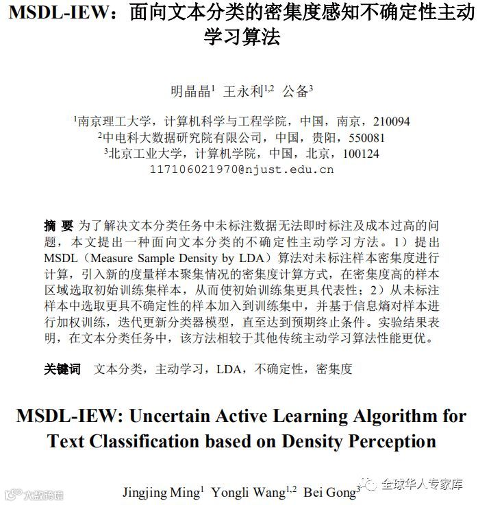 MSDL-IEW:面向文本分类的密集度感知不确定性主动学习算法