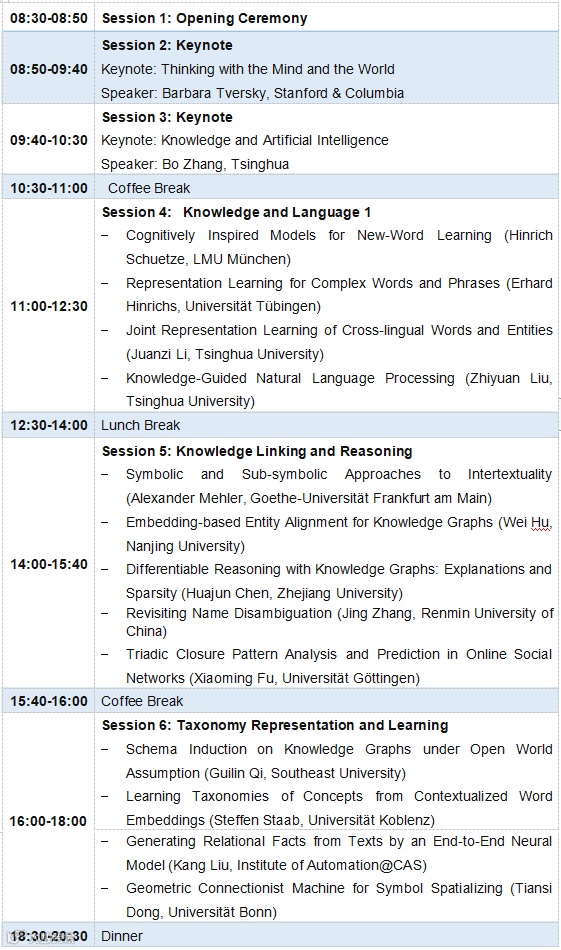 此次研讨会共邀请了15位来自德国、3位来自美国和20余位来自中国的专家学者共同探讨融合符号的数字的常识推理的理论与方法。清华大学人工智能研究院院长张钹院士,美国心理科学协会主席、斯坦福大学荣誉退休教授Barbara Tversky院士和波恩大学原副校长Armin B. Cremers教授,微软亚洲研究院副院长周明博士等将参加本次研讨会,会议日程附后。