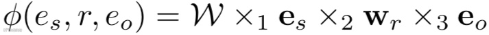 由此可以定义TuckER的得分函数为:
