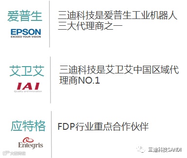 三迪科技旗下的武汉臻迪智能技术有限公司致力于提供机器人在各个行业不同产品的解决方案,在3C、半导体、汽车零部件、汽车电子、医疗、医药、新能源、LCD、塑胶成型等行业都有成功案例, 在精确定位、高速高精度重复搬运、点胶、装配、检测、封装、打磨抛光、贴片、打标、堆码、锁紧、喷涂、视觉验证等方面有深入的应用研究, 同时还提供高端机器人技术支持、培训、维修等服务。2018年正式成为湖北省第一批高新技术企业。