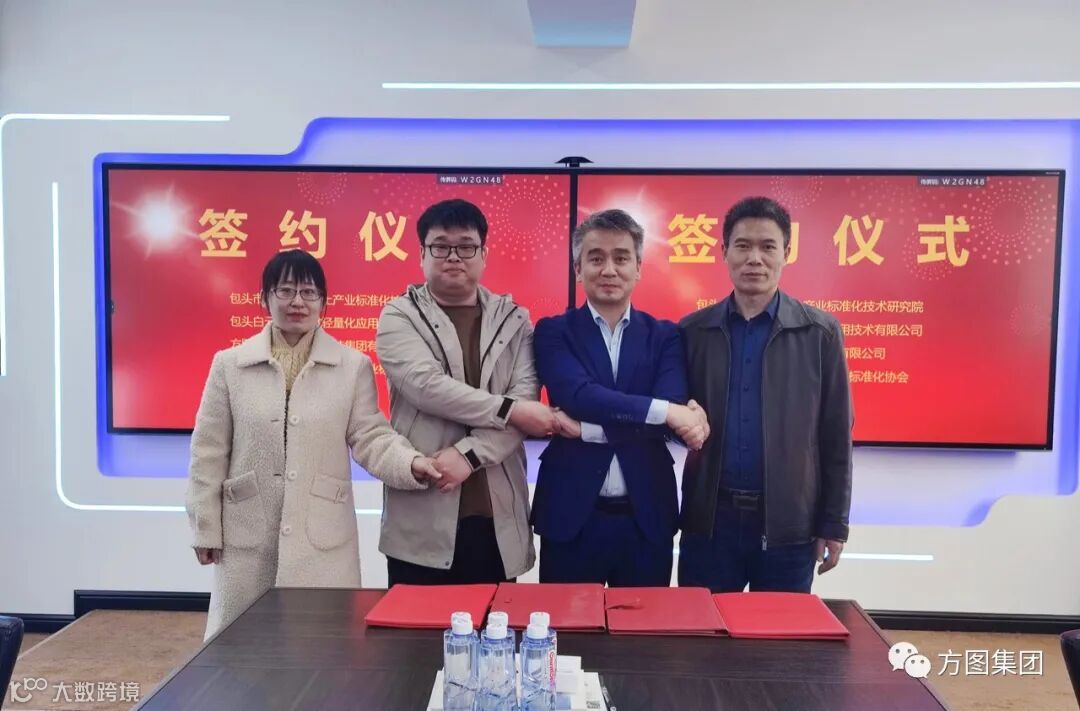 近日,包头市白云鄂博矿区稀土产业标准化技术研究院、包头市白云鄂博矿区稀土产业标准化协会、方图智能(深圳)科技集团股份有限公司、包头白云鄂博稀材轻量化应用技术有限公司在白云鄂博飞地双创园举行了“稀土抗菌标准化”项目签约仪式。白云鄂博矿区区委常委、政府常务副区长白永刚、市场监督管理局局长尹志军、工信科技局局长张瑞、方图集团董事长吴东亮、包头市白云鄂博矿区稀土产业标准化协会会长侯照东、包头市白云鄂博矿区稀土产业标准化技术研究院院长张文权、包头白云鄂博稀材轻量化应用技术有限公司董事长张燕等出席签约仪式。