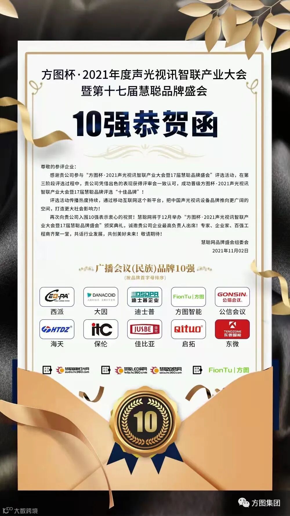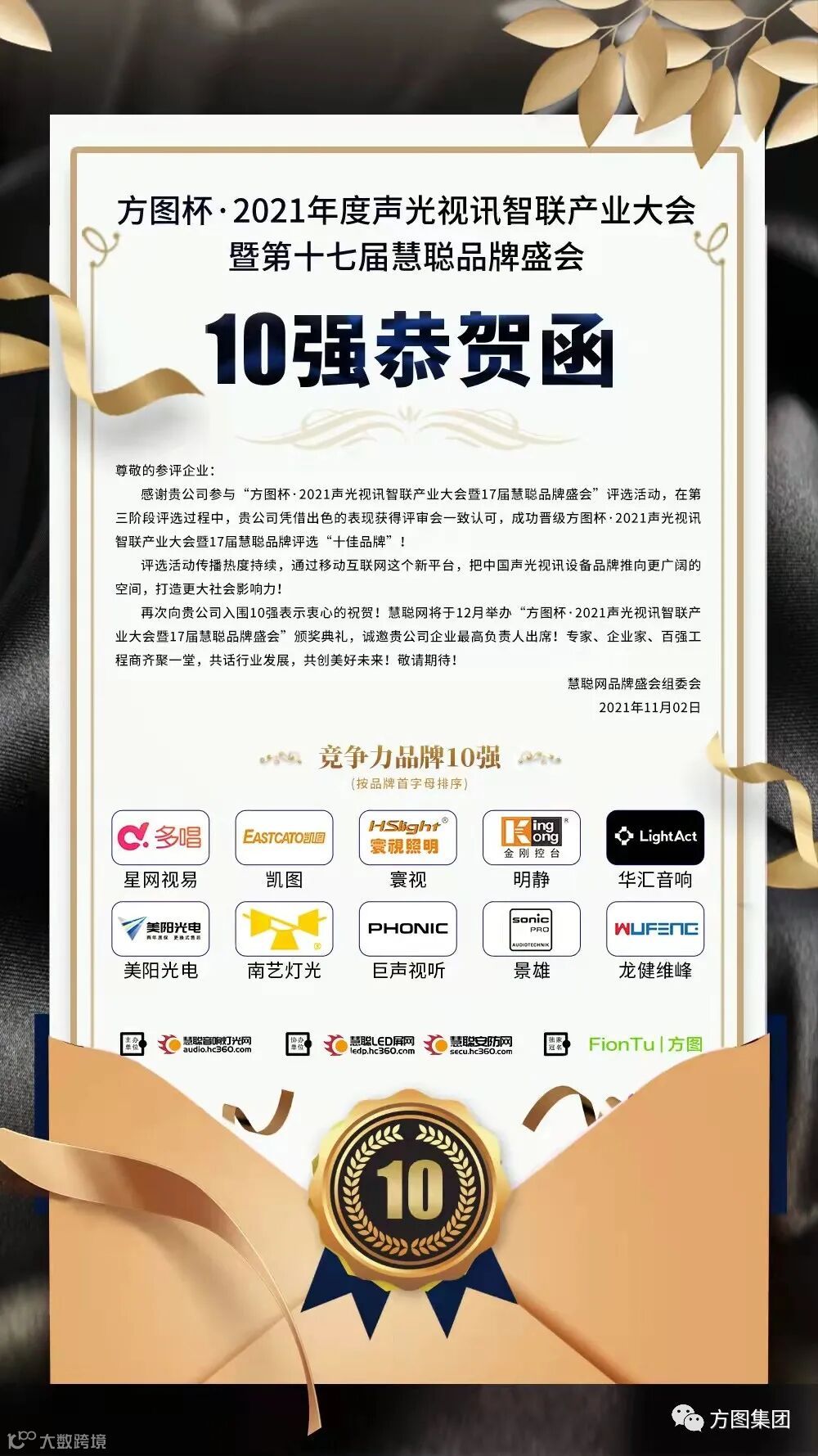 由方图集团独家冠名的方图杯·2021年度声光视讯行业品牌评选十佳品牌已荣耀揭晓!