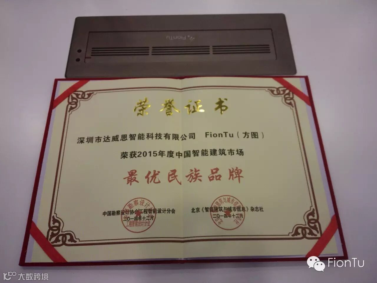 喜讯:祝贺深圳市达威思智能科技有限公司 FionTu(方图)品牌获得2015中国智能建筑行业 最具行业影响品牌、 最优民族品牌、最佳科技创新品牌、十大会议系统产品品牌四项殊荣”。
