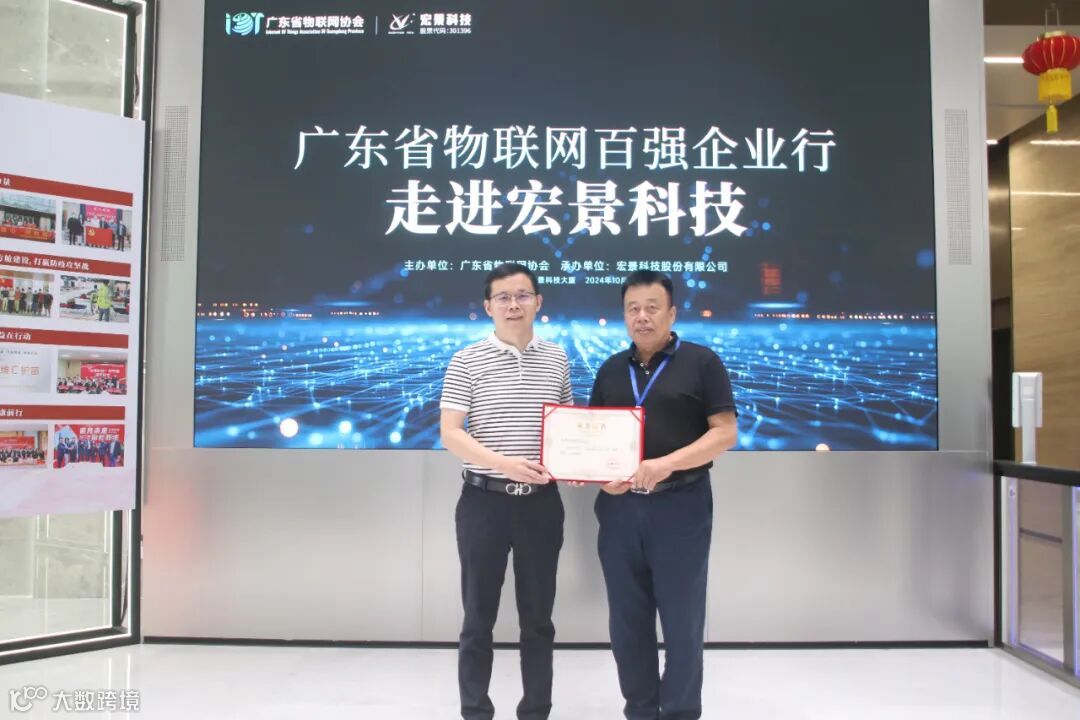 会后,曾明秘书长代表协会向宏景科技颁发了“广东省物联网百强企业”荣誉证书。