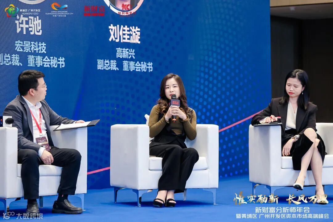 2月28日,以“惟实励新,长风万里”为主题的新财富分析师年会暨黄埔区广州开发区资本市场高端峰会盛大开幕,来自30个领域的最佳分析师将携最新研究成果,与监管机构、地方政府、专业投资机构、上市公司等方面代表齐聚广州,探寻变局中的投资之道,宏景科技副总裁、董事会秘书许驰女士代表出席并参加圆桌主题探讨。