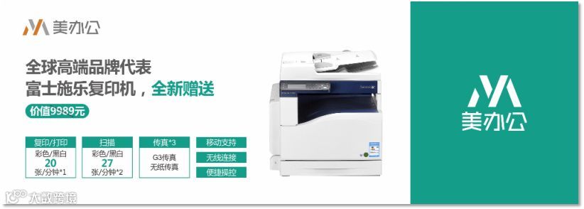 ▶ 价值9989元富士施乐彩色复印机,50人以上企业全新赠送,按印张收费。